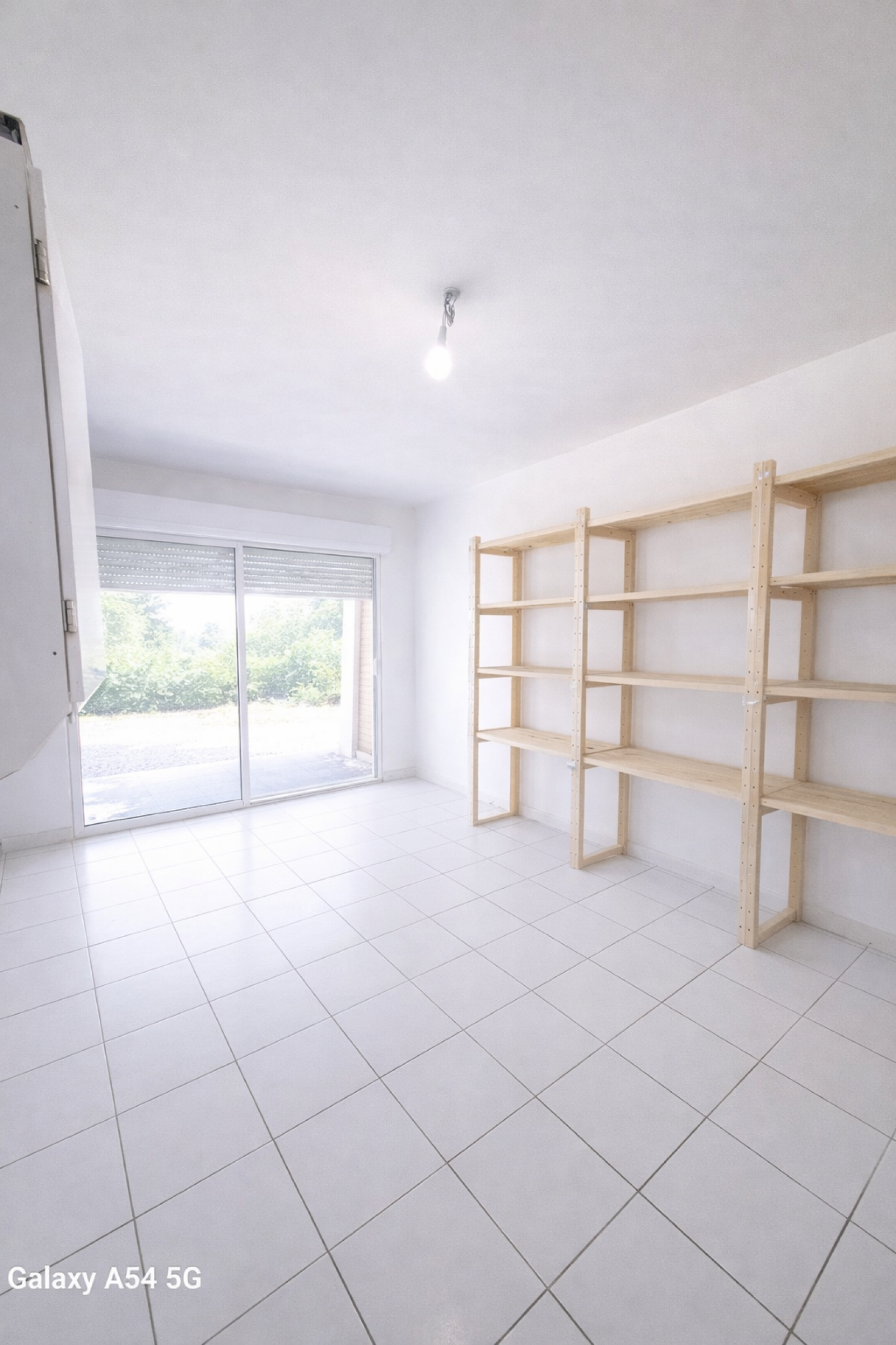 le garage transformée avec une baie vitrée carreler et isoler offre un espace de rangement supplémentaire