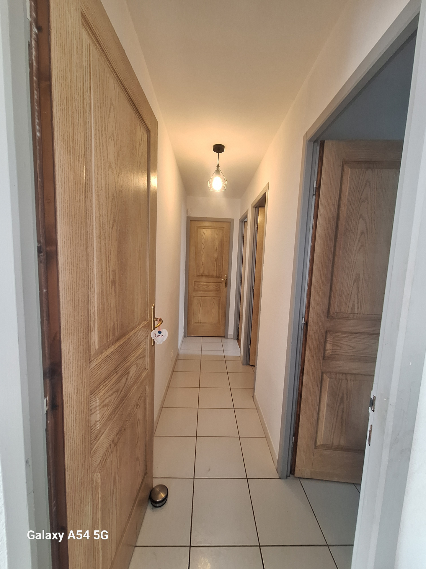 un couloir deservant deux belle chambre une salle d'eau et un wc independant .