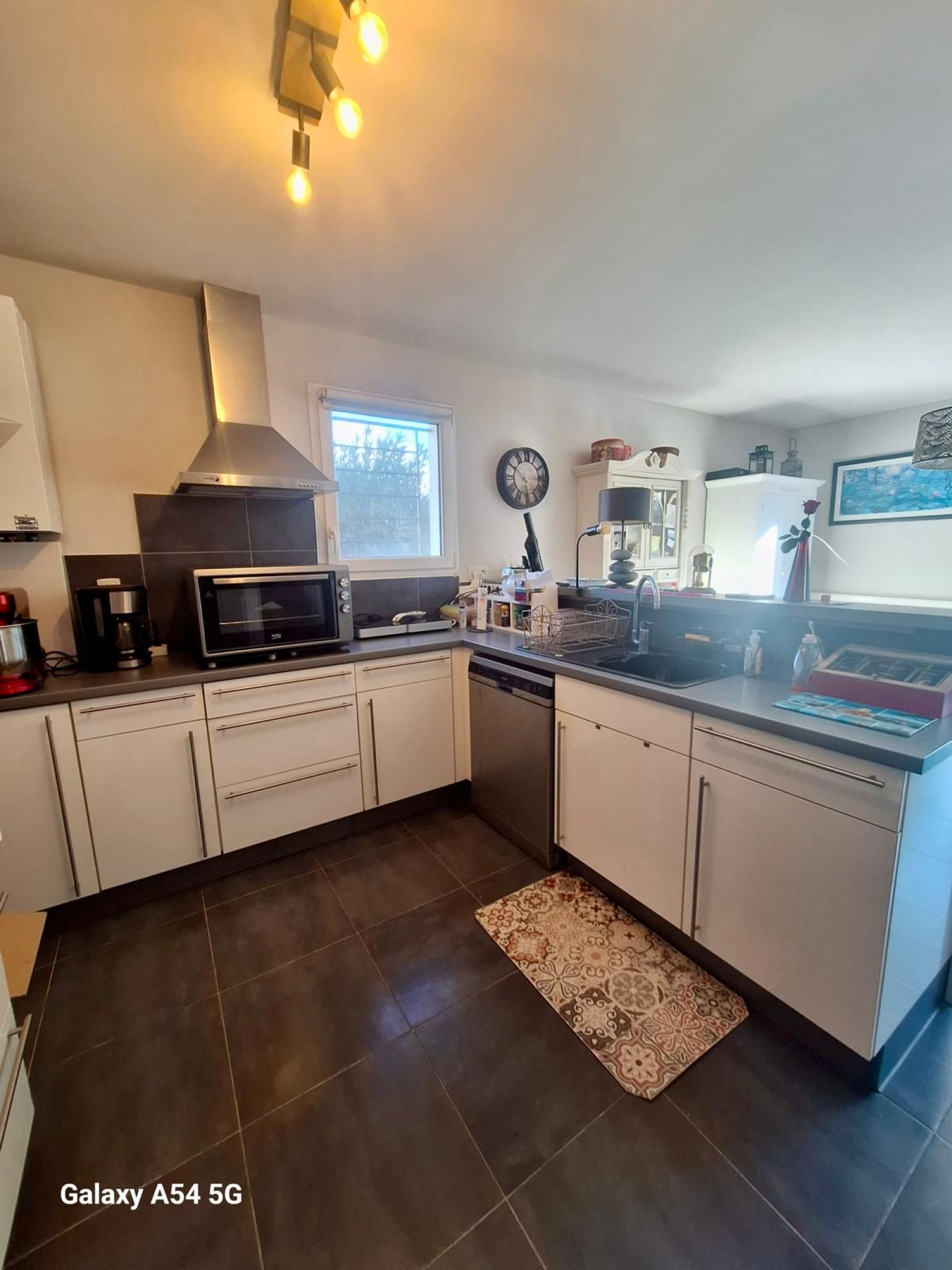 Une belle belle pièce de vie avec cuisine donnant sur l 'exterieur.