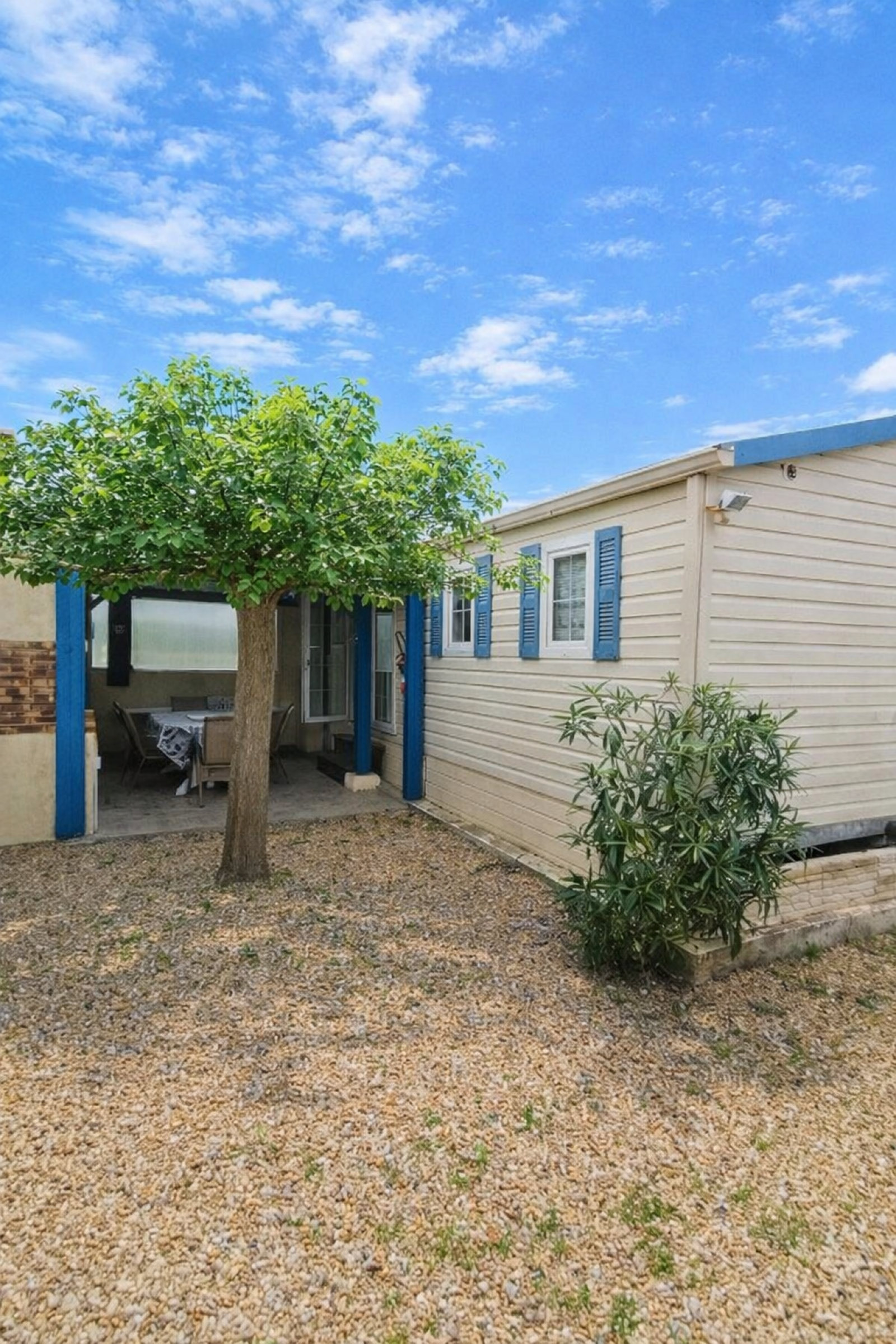 Sigean (11130)Parcelle de terrain avec mobil home et avancée situé dans un camping familial et fermé avec piscine et gardien à Sigean à 5 min de la mer.