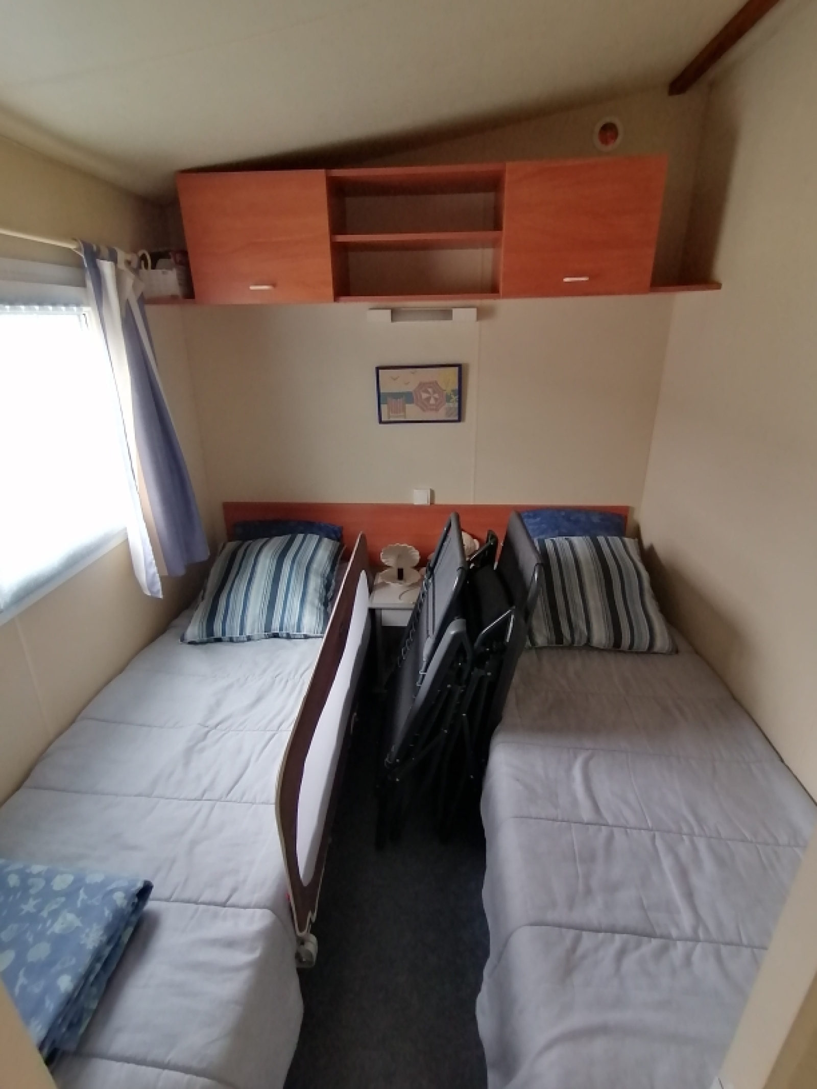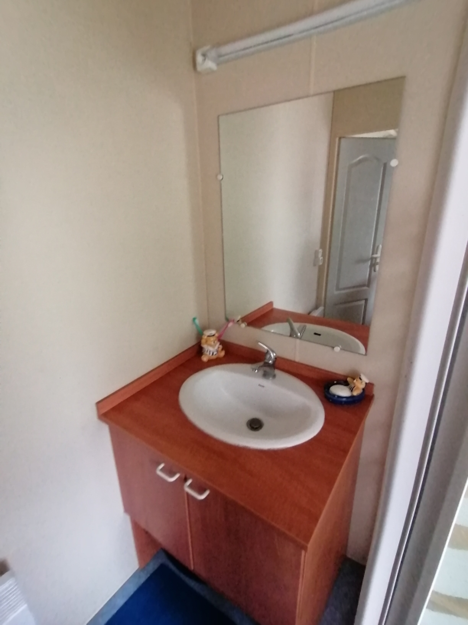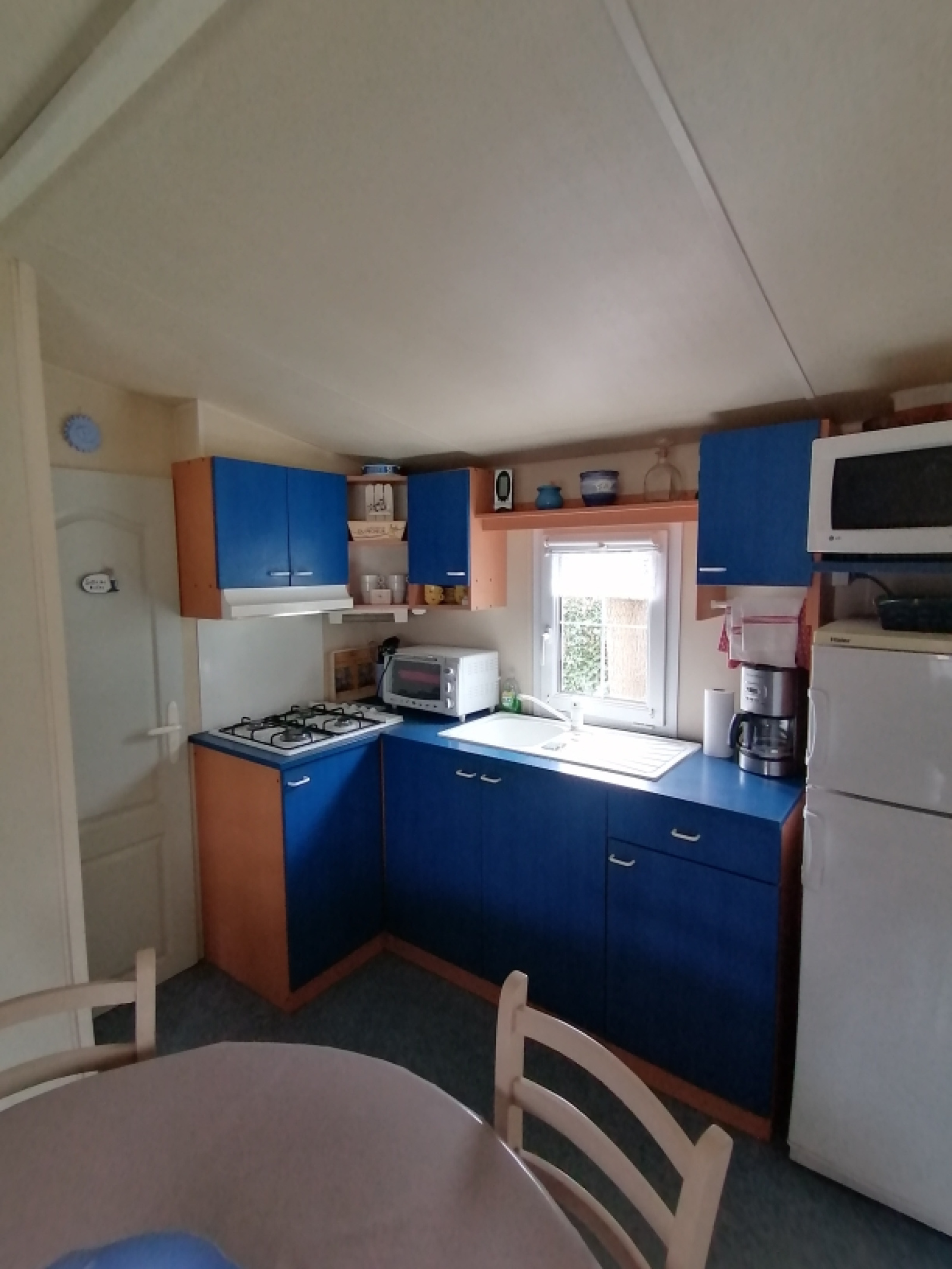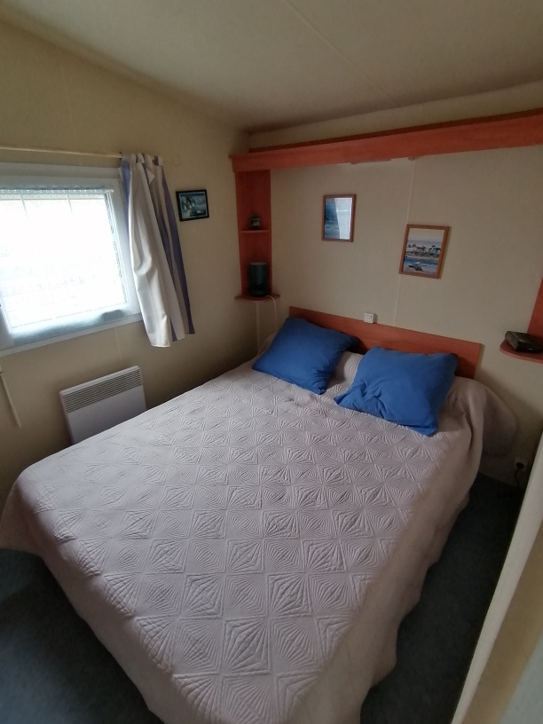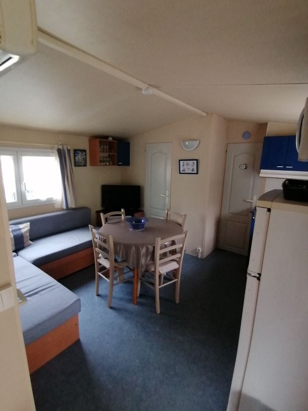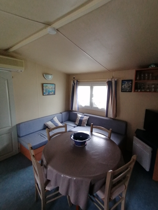 Le mobil home d'une surface de 30 m2 avec climatisation comprend 2 chambres, un séjour avec cuisine ouverte, d'une salle d'eau avec douche et vasque et WC séparé.
