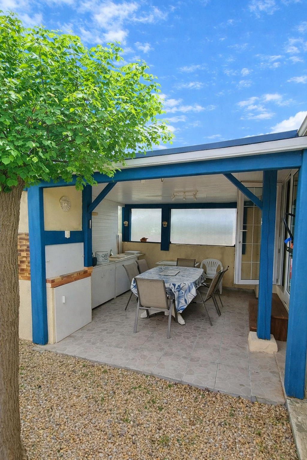 L'avancée de 15 m2 dispose d'une cuisine d'été avec toit.